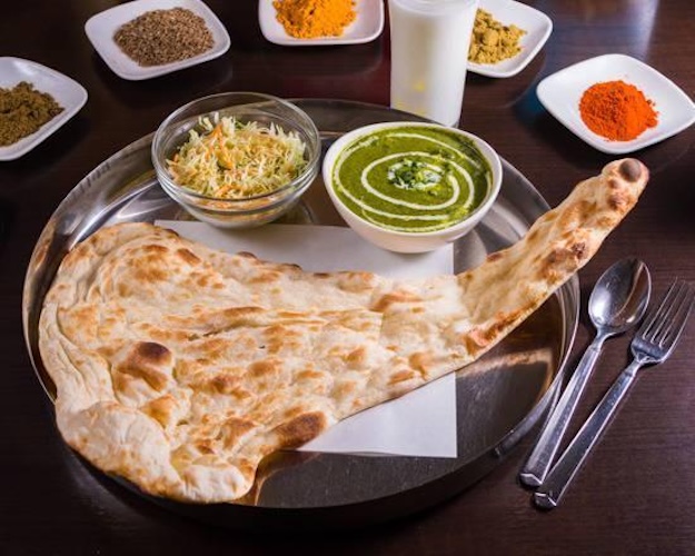 ほうれん草をペーストしてベースにしました。ほうれん草が少し香るカレーです。カレーの具材、辛さ、ドリンク、ナンかライスをお選び下さい。(サラダ付)